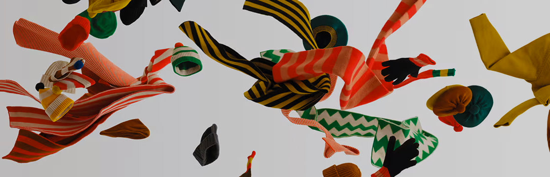 British knitwear label known for vibrant colour palettes, modern geometric patterns and sustainably crafted accessories made from premium natural wool.