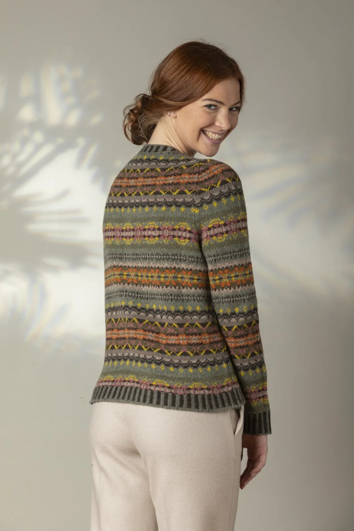 - Fairisle pattern with striped cuffs and hem