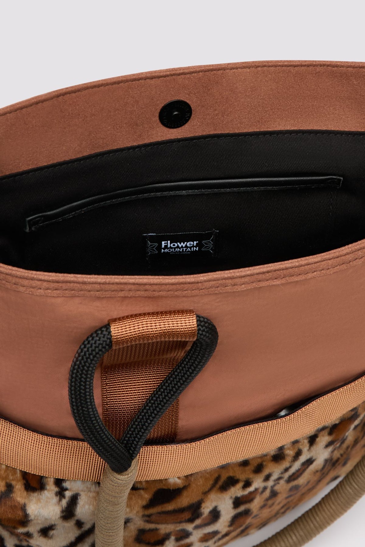 Flower Mountain reworks the everyday tote with sporty detailing and tactile fabrics. Crafted from soft furry fabric with technical tape and suede trims, it balances utility with character. Wide handles mean it can be carried by hand or slung over the shoulder, while side drawstrings cinch the shape as needed.