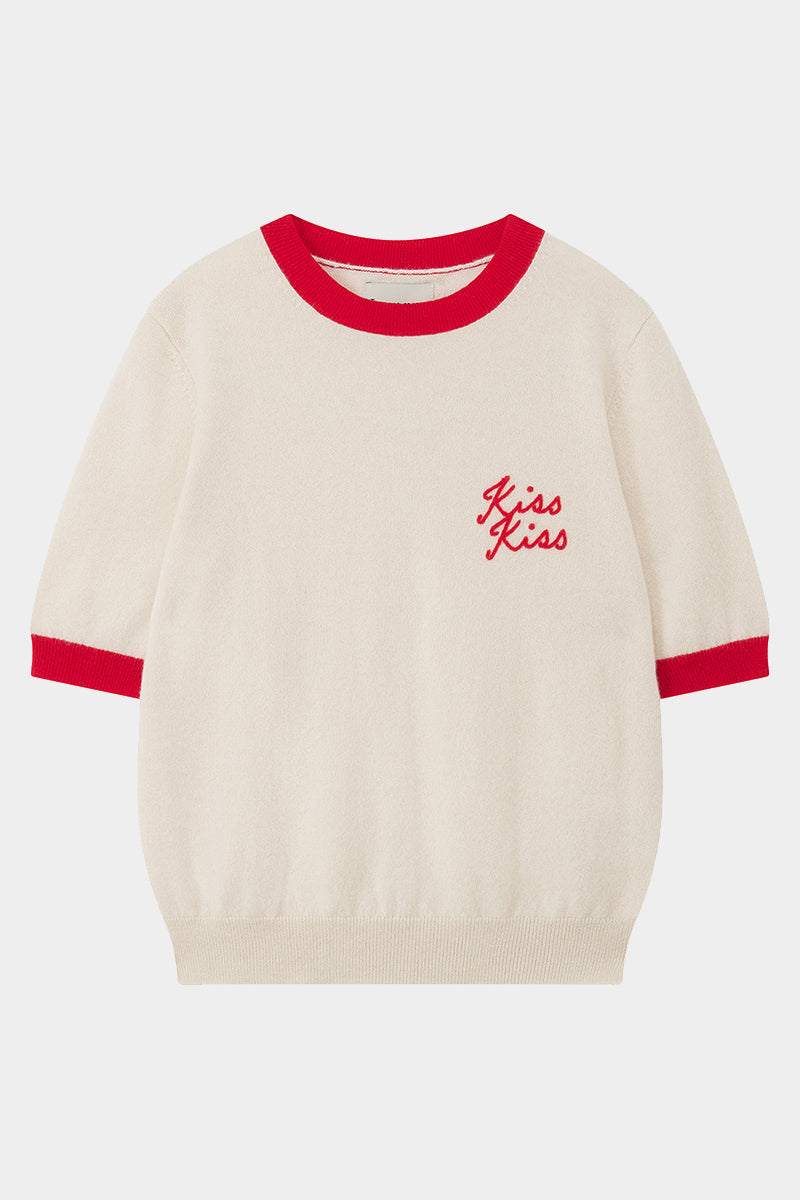 Kiss Kiss Ringer Cashmere T-Shirt - Jasmine/Rose