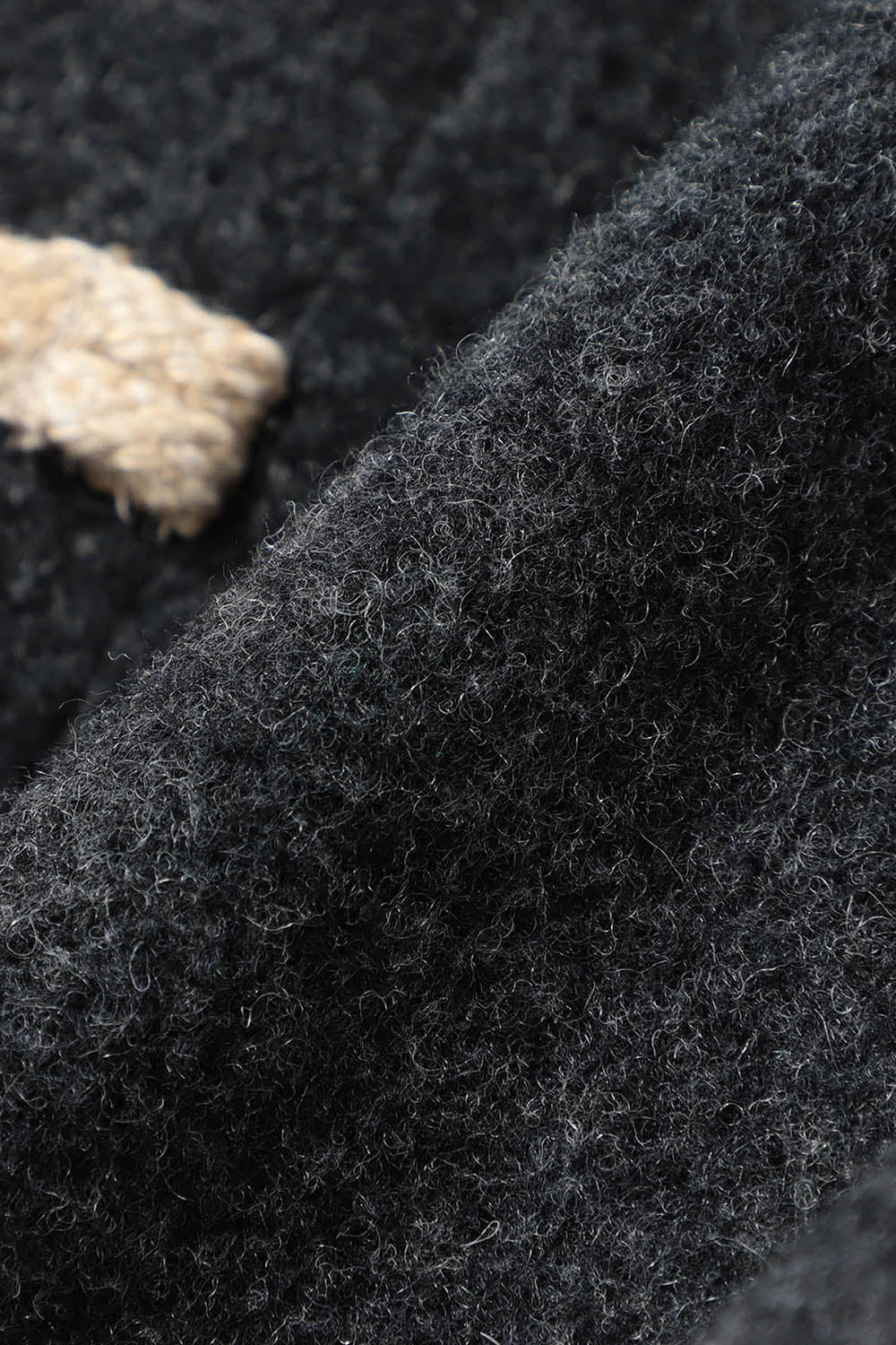 - Long duffle coat style with wooden toggle fastening
