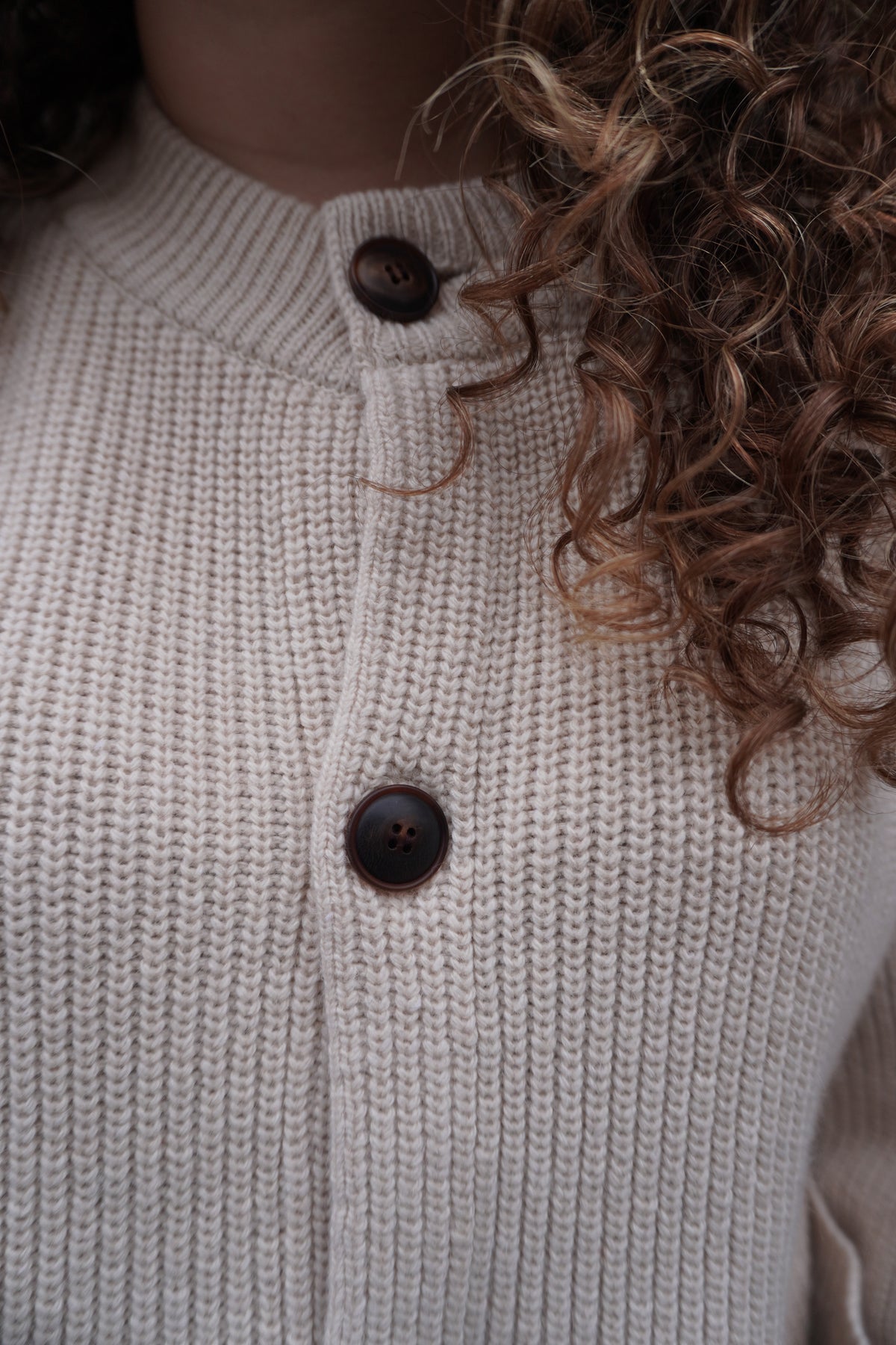 Heavy Wool Round Cardigan - Cream