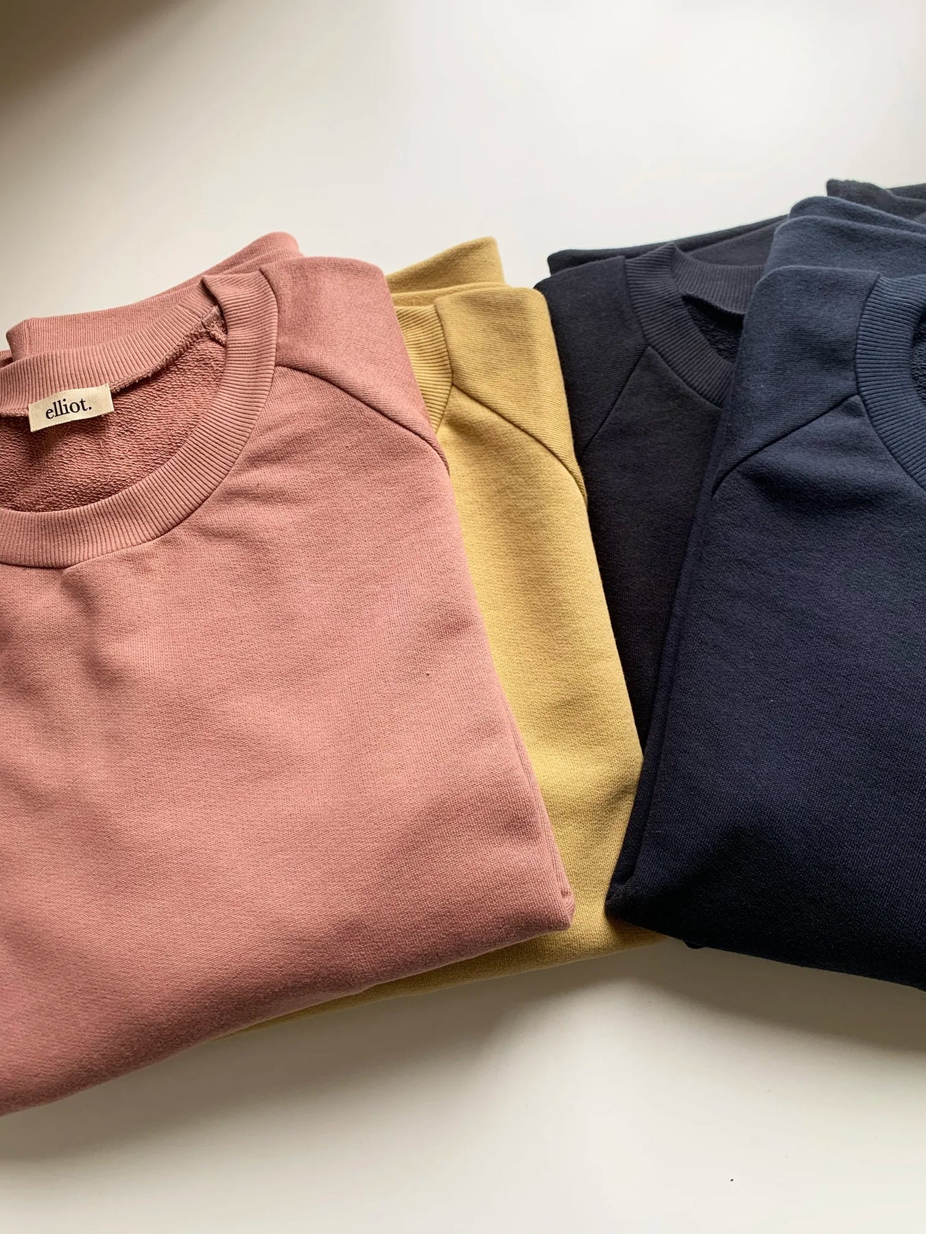 elliot.'s relaxed and oversized Joanie Sweat is your classic sweatshirt - with a twist. Featuring a wide rib neckline and a slightly longer, gently curved back, she’s ideal for layering over a tank on those warmer days, or over one of our tees as the temperature drops.