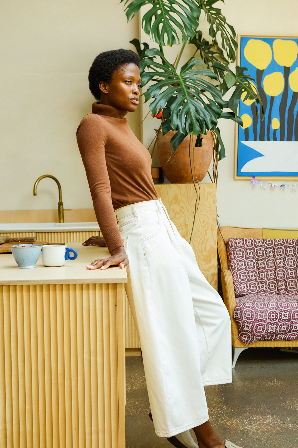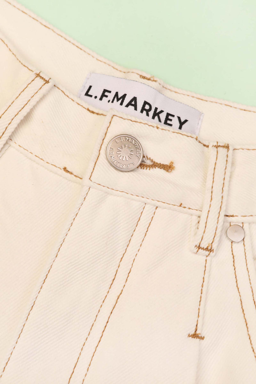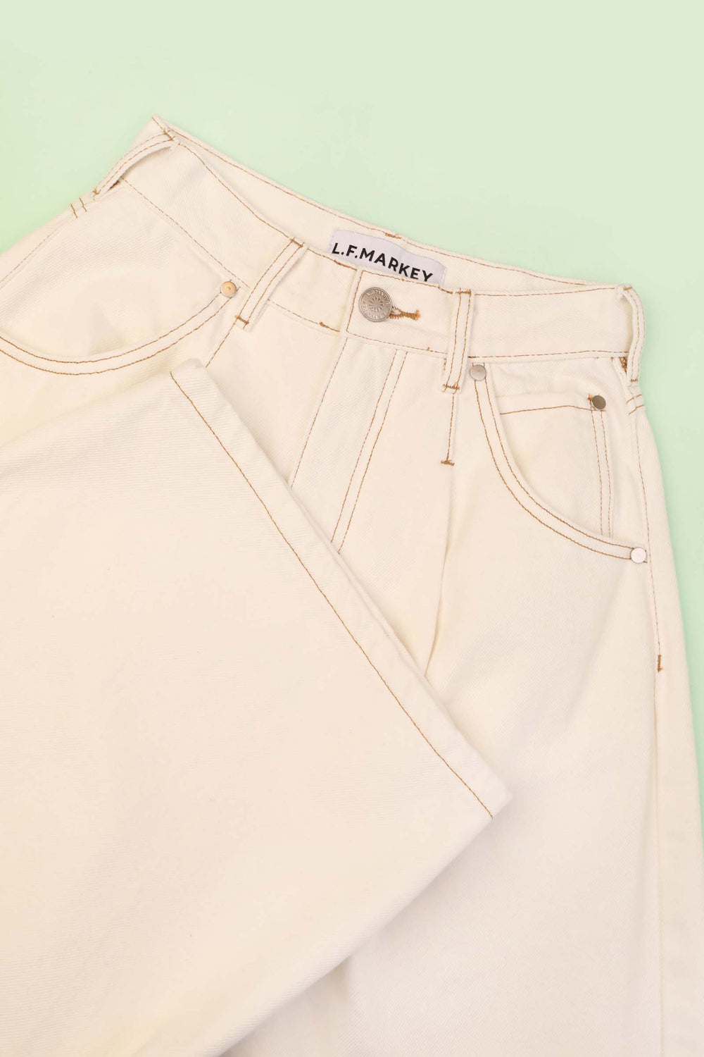 - High-waist, pleated denim.