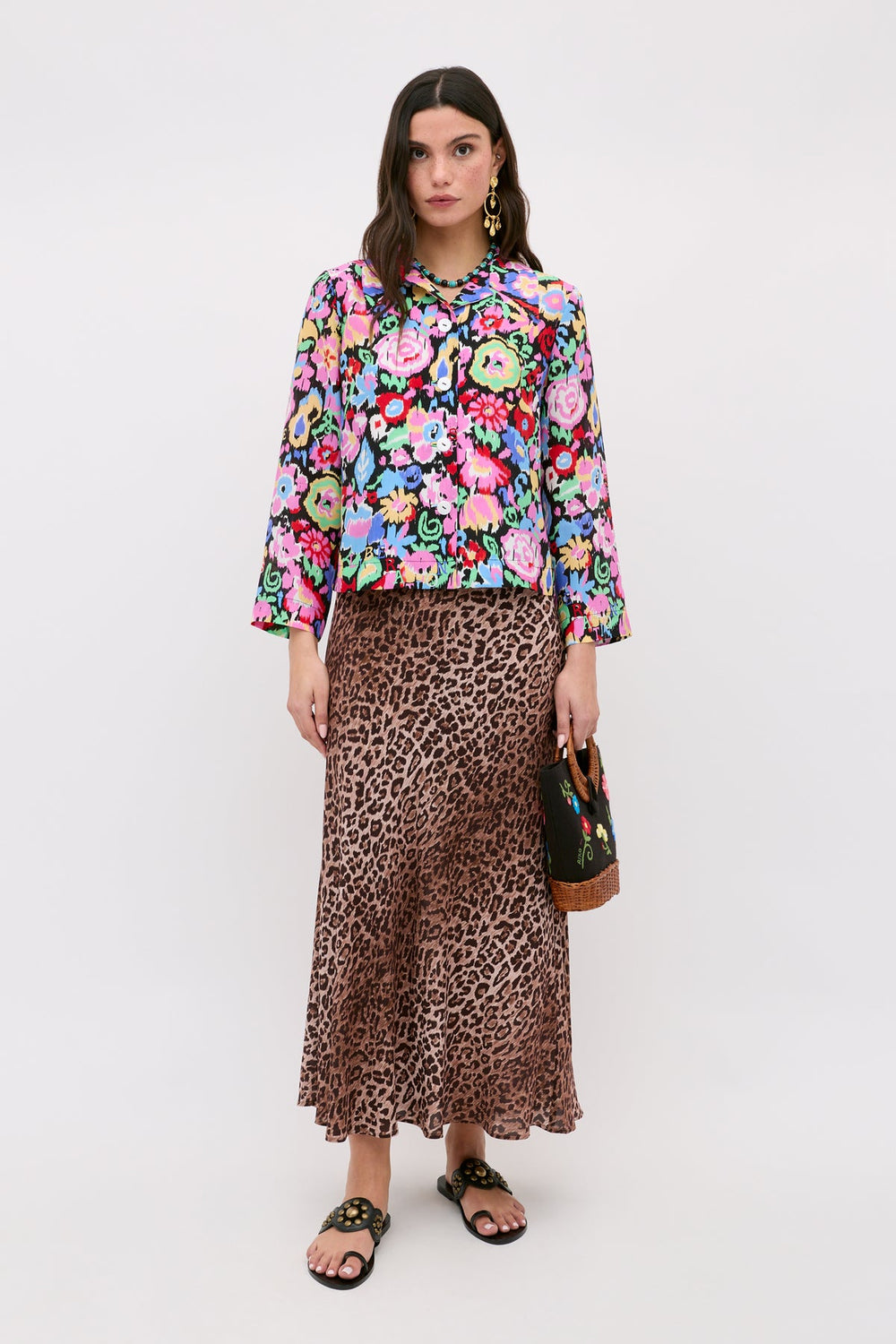 Ginette Silk Shirt - Ikat Bloom Charcoal