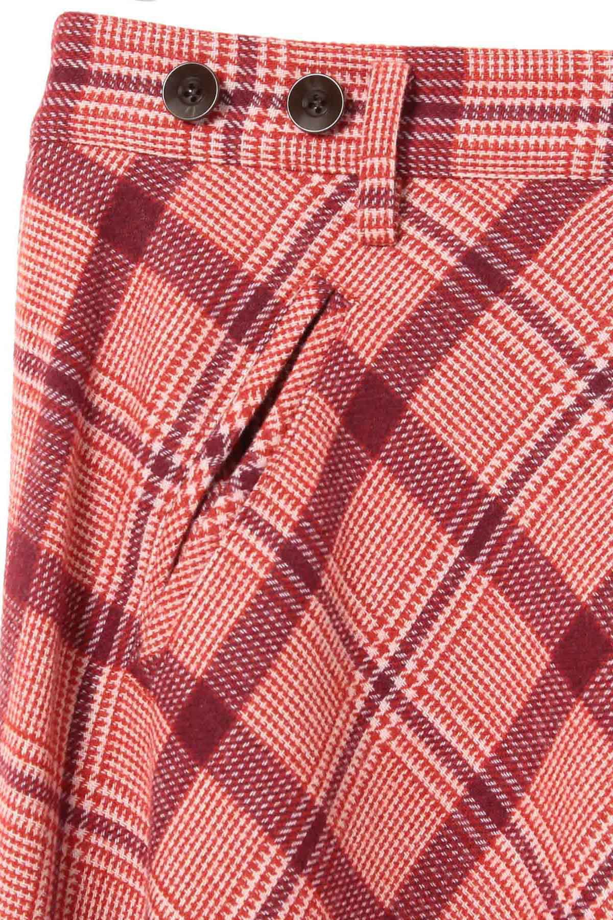 Check Long A-Line Skirt - Red