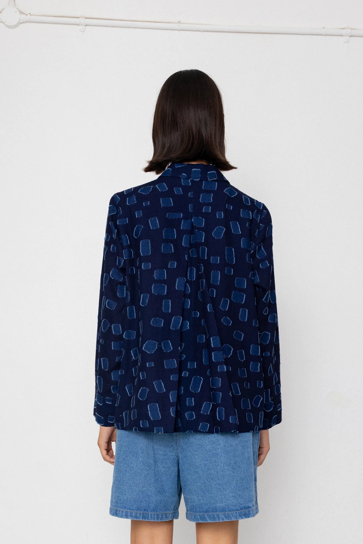 Care // This fabric features floating yarns that form part of the design. Please handle this garment with care in-order to avoid snagging. As with all indigo dyed garments, some colour bleeding is expected. The bleeding will reduce after a few washing and wearing cycles but, in general, we would advise to avoid contact with lighter coloured fabrics.