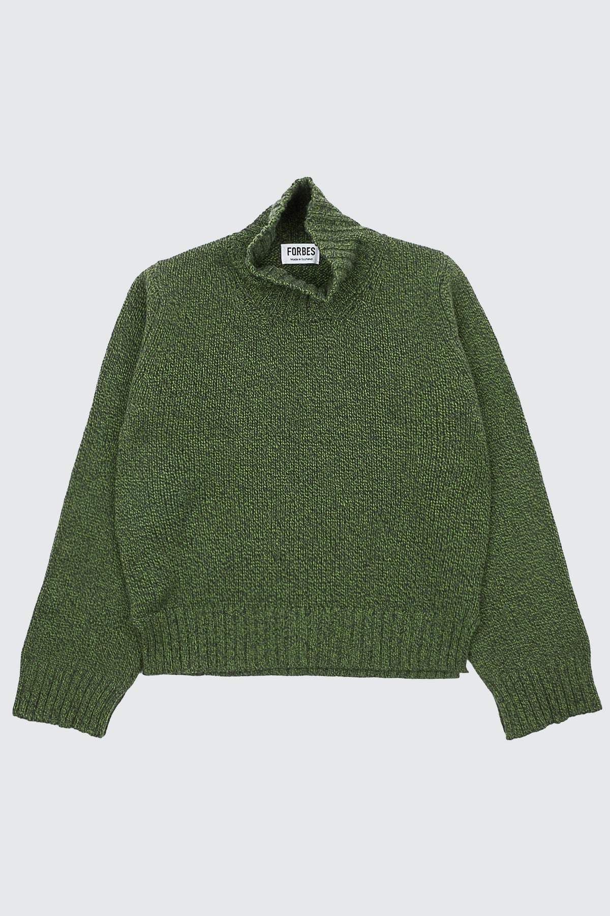 Designed by Frontiers founder, Jane Forbes, and knitted in Scotland, the Funnel Neck Jumper is a medium-weight, hip length jumper. Featuring a loose funnel neck, fully fashioned raglan sleeves and side splits, this piece marries style and comfort.