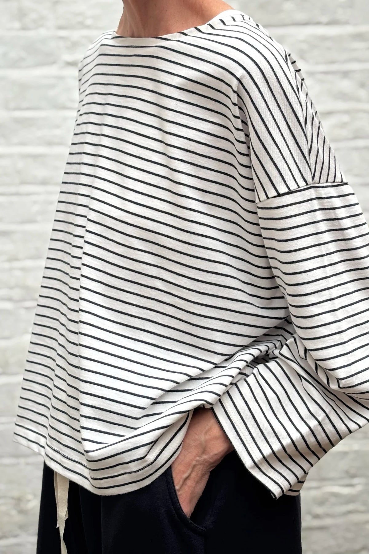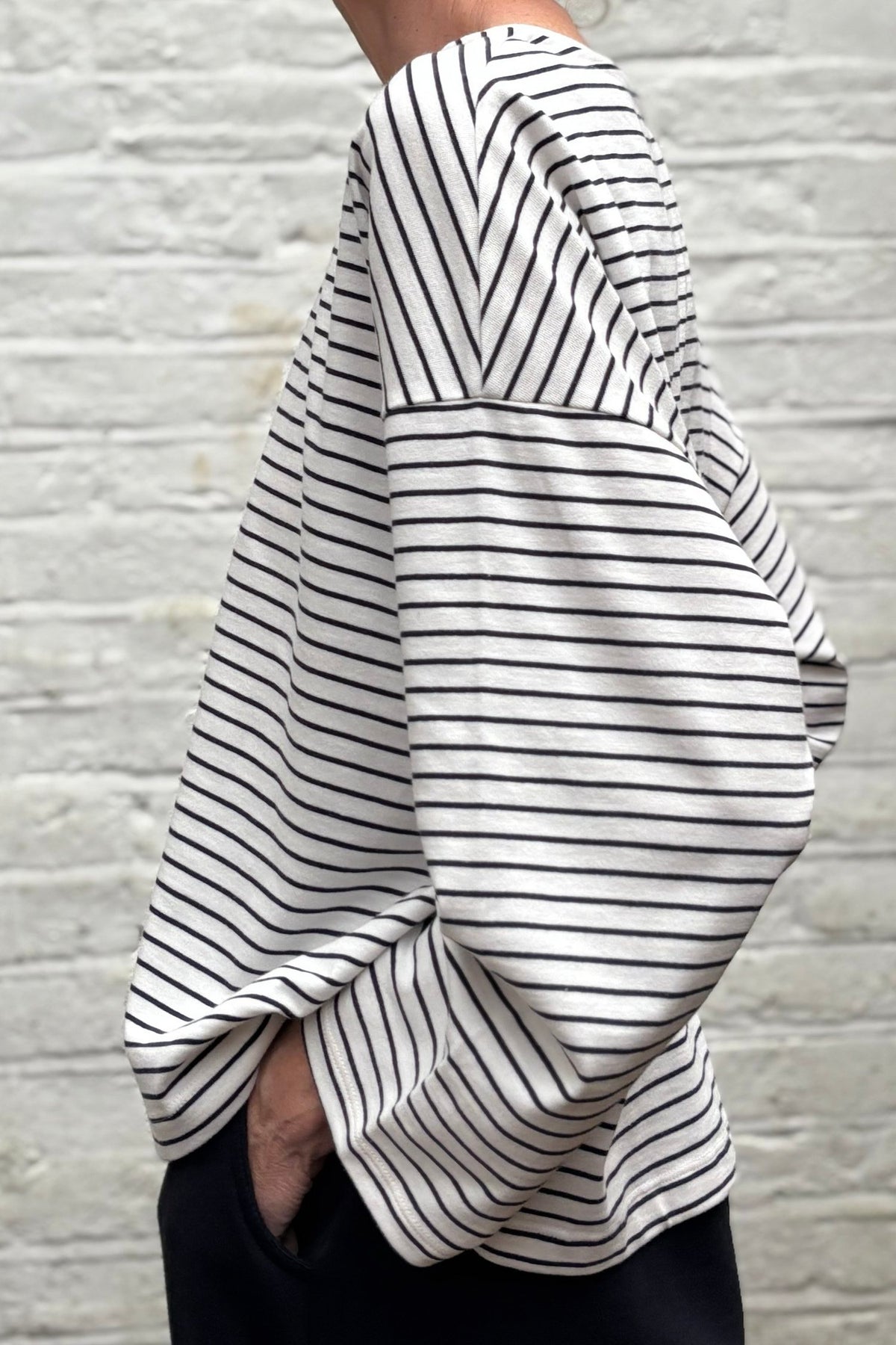 Relaxed and oversized, the Martha tee is your perfect autumn layer. Somewhere between a t-shirt and a sweatshirt, with an elegantly wide neckline and a pretty side vent detail, it’s ideal for throwing over a tank on those warmer days, or over our new Agnes base layer as the temperature drops.