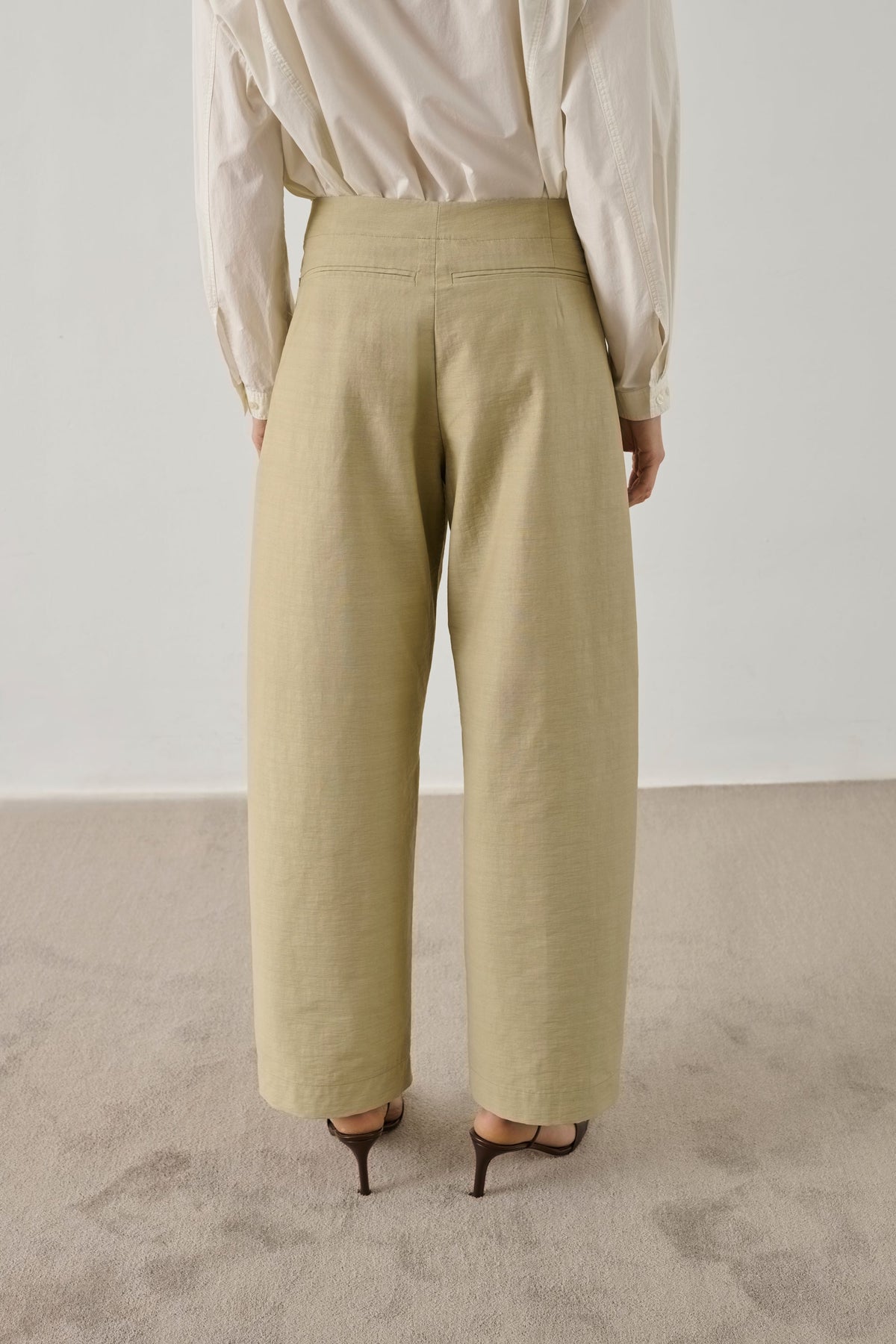 The high-rise waist creates a flattering shape, while the wide-leg cut delivers movement and a relaxed sophistication. Oversized front patch pockets add both function and character, complemented by minimal topstitching for a polished finish.